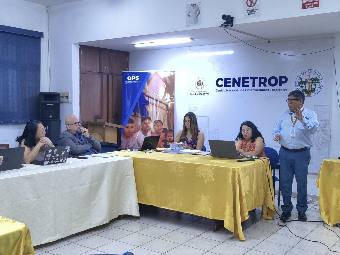 Entre las autoridades nacionales, participaron la Dra. Roxana Elizabeth Salamanca Kacic, Viceministra de Promoción, Vigilancia Epidemiológica y Medicina Tradicional, el Dr. Jhemis Molina, director general de Epidemiología del MSyD junto a su equipo técnico, y la Dra. Adriana Iriarte, directora de CENETROP.