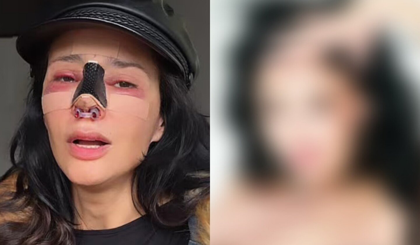 • En 2024 la operó por tercera vez, pero no recuperó su volumen. Meses después la nariz colapsó y la cicatriz quedó muy expuesta, lo que le desfiguró el rostro.