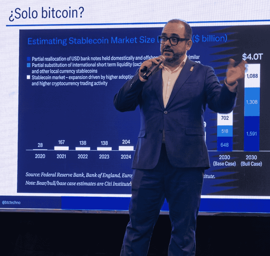 El fenómeno venezolano intenta seguir la maduración institucional vista en mercados globales, donde gigantes como BlackRock han legitimado a bitcoin a través de fondos cotizados (ETF). Con base en ello, Garrido presentó a los asistentes a la Cumbre el modelo de Michael Saylor y Strategy como el referente global de esta transición hacia activos digitales.