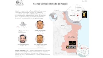 Estados Unidos ha anunciado nuevas sanciones contra el Cartel del Noreste (CDN). En el marco de su política antidrogas, el Departamento del Tesoro, a través de la Oficina de Control de Bienes Extranjeros (OFAC, por sus siglas en inglés), ha dado a conocer la congelación de los bienes y propiedades en EE UU de Juan Pablo Penilla Rodríguez, Jesus Reymundo Ramos Vázquez y Eduardo Javier Islas Valdez, alias Crosty, así como los casinos en Tamaulipas Centenario y Diamante, ambos operados por la Comercializadora y Arrendadora de México, S.A. de C.V.(CAMSA), por sus presuntos vínculos en el tráfico de fentanilo, de personas, el blanqueo de dinero y la extorsión para el Cartel del Noreste.