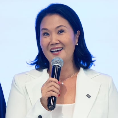 AME3058. LIMA (PERÚ), 13/04/2026.- La candidata presidencial peruana Keiko Fujimori habla en una rueda de prensa este lunes, en Lima (Perú). Fujimori, la hija y heredera política del expresidente Alberto Fujimori (1990-2000), es la candidata mejor posicionada para disputar una vez más la Presidencia de Perú en una segunda vuelta electoral tras las elecciones de este domingo, frente a un rival que se definirá voto a voto en un escrutinio largo y lento entre seis candidatos que aparecen empatados en los sondeos a pie de urna. EFE/ Renato Pajuelo