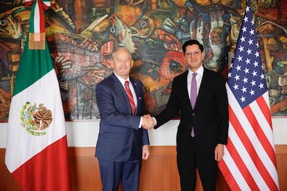 El nuevo secretario de Relaciones Exteriores mexicano, Roberto Velasco, se ha reunido con el embajador de Estados Unidos en el país, Ronald Johnson, como parte de su gira de presentación en el cargo. Consciente de la importancia de la relación bilateral con su vecino norteño, Velasco ya habló esta semana por teléfono con el titular del Departamento de Estado, Marco Rubio. En un comunicado que divulgó más tarde Relaciones Exteriores, la dependencia señalaba que ambos habían “reconocido los avances realizados en materia de seguridad, con respeto a los principios que ambos países han acordado”.